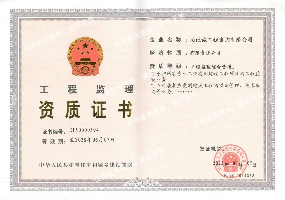 深耕工程咨詢行業(yè)20年,同致誠(chéng)始終堅(jiān)持“全員參與 誠(chéng)信務(wù)實(shí) 科學(xué)嚴(yán)謹(jǐn) 持續(xù)改進(jìn)”的質(zhì)量方針,持續(xù)加強(qiáng)資質(zhì)體系建設(shè),現(xiàn)已擁有工程監(jiān)理綜合資質(zhì)、工程招標(biāo)代理甲級(jí)、工程造價(jià)咨詢甲級(jí)、工程咨詢(建筑)甲級(jí)資信、工程咨詢(市政公用工程)甲級(jí)資信、政府采購(gòu)代理機(jī)構(gòu)甲級(jí)、城鄉(xiāng)規(guī)劃編制乙級(jí)、中央投資項(xiàng)目招標(biāo)代理乙級(jí)、農(nóng)田工程建設(shè)勘測(cè)設(shè)計(jì)單位乙級(jí)等10余項(xiàng)行業(yè)專項(xiàng)資質(zhì)。