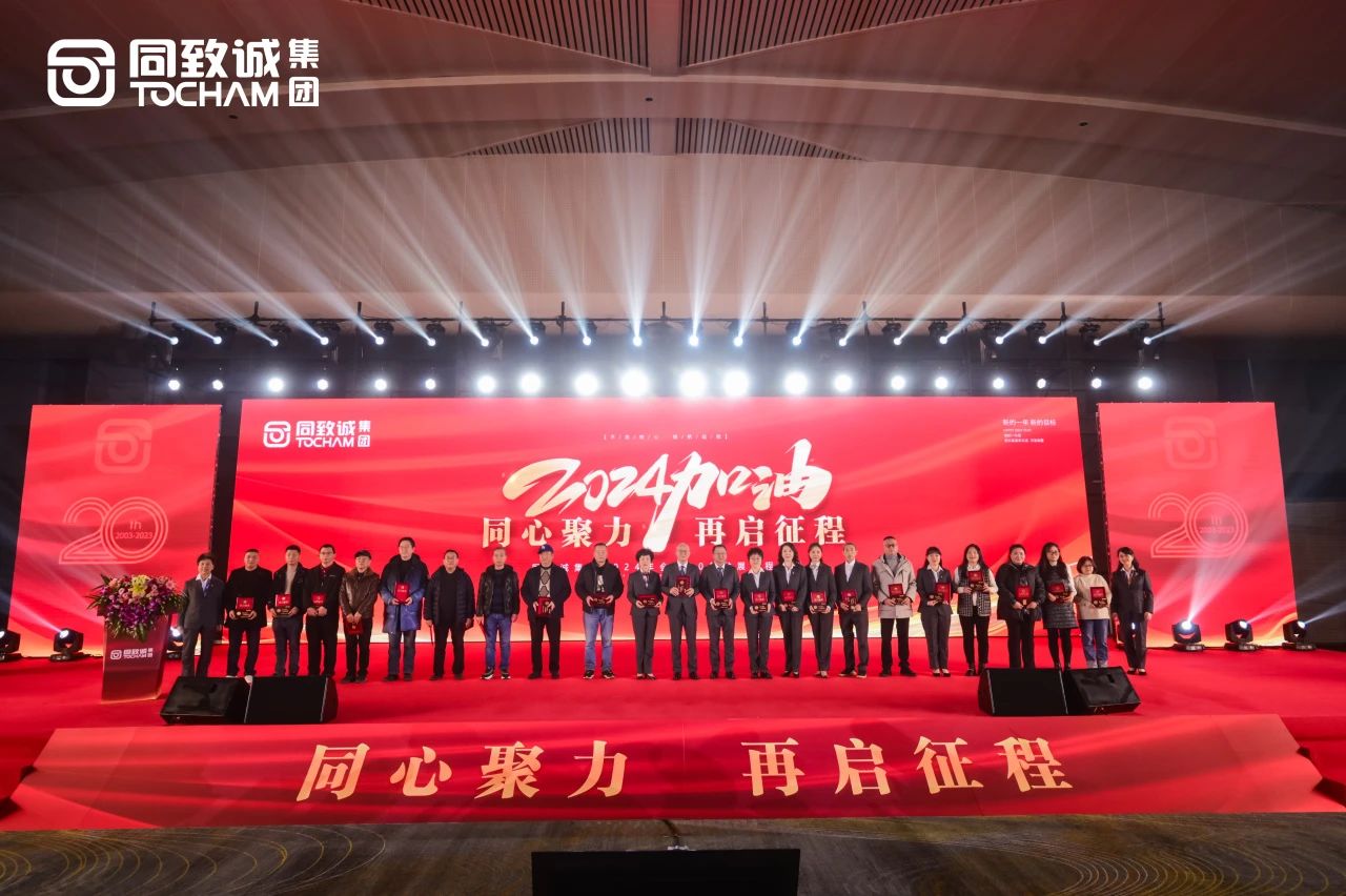 聽完董事長的講話,與會人員不僅更了解集團業(yè)務(wù),而且熱血沸騰,對未來發(fā)展更有信心,充滿干勁。作為同致誠人,當我們面對困難,總是積極面對,迎難而上。隨后在張雷董事長和集團員工代表的帶領(lǐng)下,大家一起合唱歌曲《和你一樣》,讓人充滿力量。接著,集團領(lǐng)導紛紛上臺,為集團發(fā)展送上美好祝福,全場所有人員共同舉杯慶賀同致誠集團2024年會暨20年發(fā)展歷程回顧活動成功舉辦。