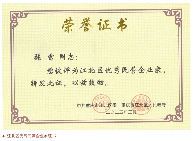 榮獲“江北區(qū)優(yōu)秀民營(yíng)企業(yè)家”稱(chēng)號(hào)