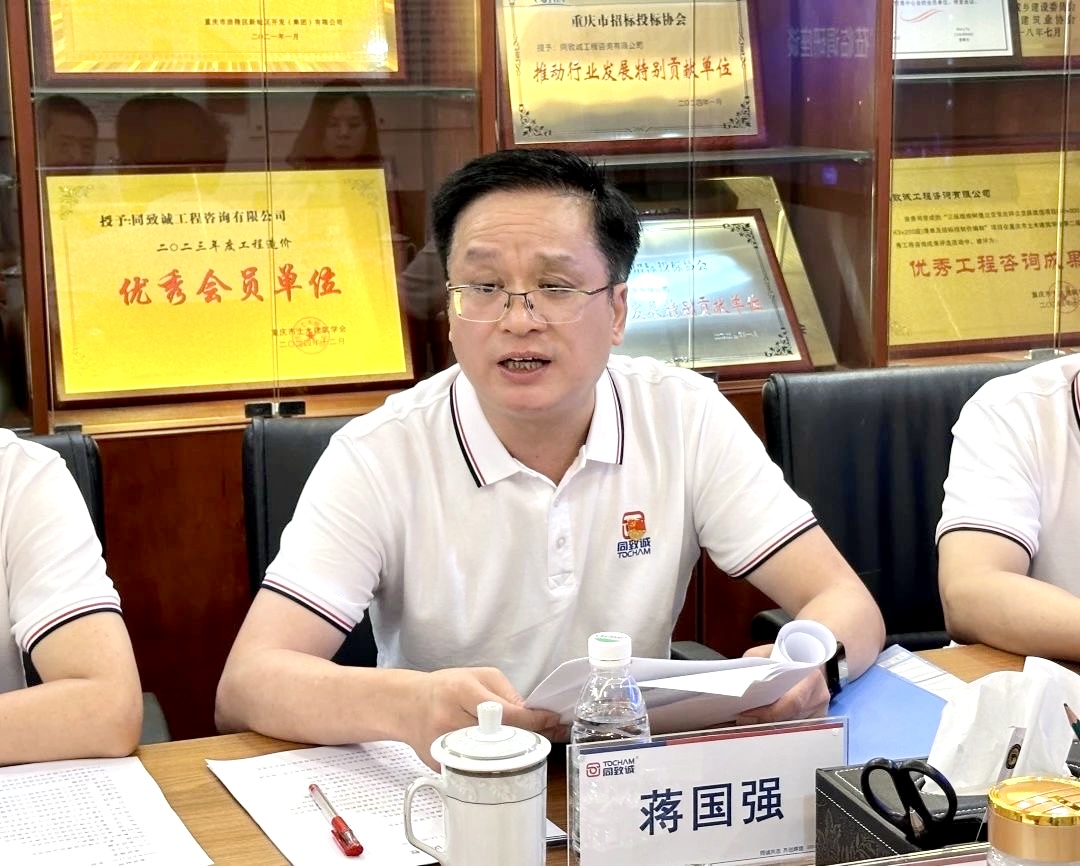 緊接著,同致誠公司總工程師、副總經理、黨支部紀檢委員蔣國強代表公司從“企業基本情況、當前業務調整策略及挑戰、企業信息化運用、對當前監理行業現狀及發展趨勢的看法建議”等7個方面作匯報。他提到,公司自成立以來,始終堅持“誠信、誠心、誠懇、同進、同享、同贏”的經營理念,致力于為客戶提供優質的工程咨詢服務。在業務開展過程中,公司不斷加強技術創新和人才培養,積累了豐富的項目經驗,在多個領域打造了一批具有代表性的優質工程,贏得了客戶的廣泛認可和好評。面對項目減少、激烈的市場競爭,民營企業生存空間越來越小的挑戰,公司堅持“走出去”和“多元化”發展戰略,積極拓展全國市場,布局全過程工程咨詢,深化BIM技術運用,提升服務效能,以創新驅動應對行業變革。同時希望協會繼續為會員單位提供技術支持和培訓機會,加強與業主的溝通交流,及時督促各會員單位改進工作方式和方法,提高監理成效。