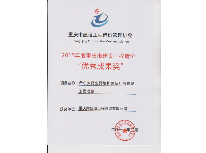 重慶和潤汽摩城二期四標A區5號樓工程榮獲二0一四年度三峽杯優質結構工程獎