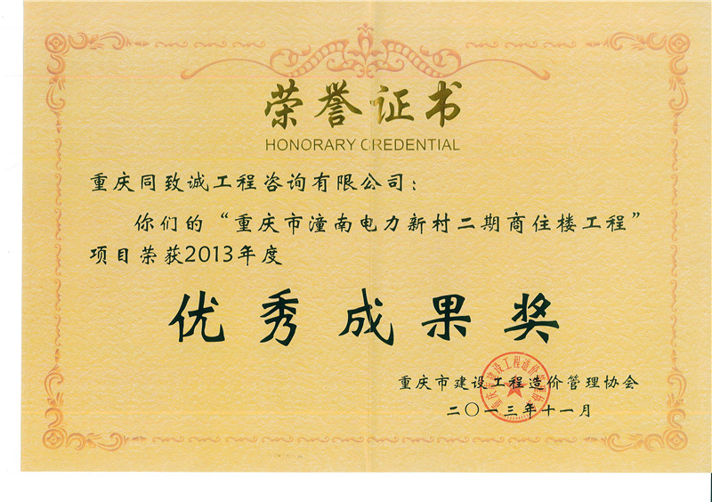2013年重慶市三峽杯優質結構工程獎“華潤中心一期B地塊二標段”