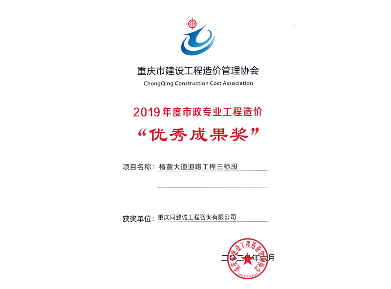 2019年度市政專業工程造價優秀成果獎-椿萱大道道路三標段