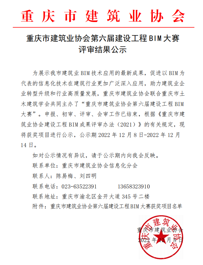 近日,由重慶市建筑業(yè)協(xié)會(huì)聯(lián)合重慶市土木建筑學(xué)會(huì)共同主辦的“重慶市建筑業(yè)協(xié)會(huì)第六屆建設(shè)工程BIM大賽”評(píng)審結(jié)果揭曉,憑借BIM技術(shù)與全過(guò)程造價(jià)咨詢(xún)的創(chuàng)新融合,同致誠(chéng)工程咨詢(xún)有限公司參與的“重慶龍興足球場(chǎng)BIM全過(guò)程造價(jià)管理項(xiàng)目”榮獲綜合BIM技術(shù)應(yīng)用二等獎(jiǎng)。