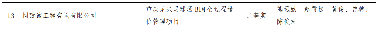 “重慶龍興足球場(chǎng)BIM全過(guò)程造價(jià)管理項(xiàng)目”榮獲綜合BIM技術(shù)應(yīng)用二等獎(jiǎng)