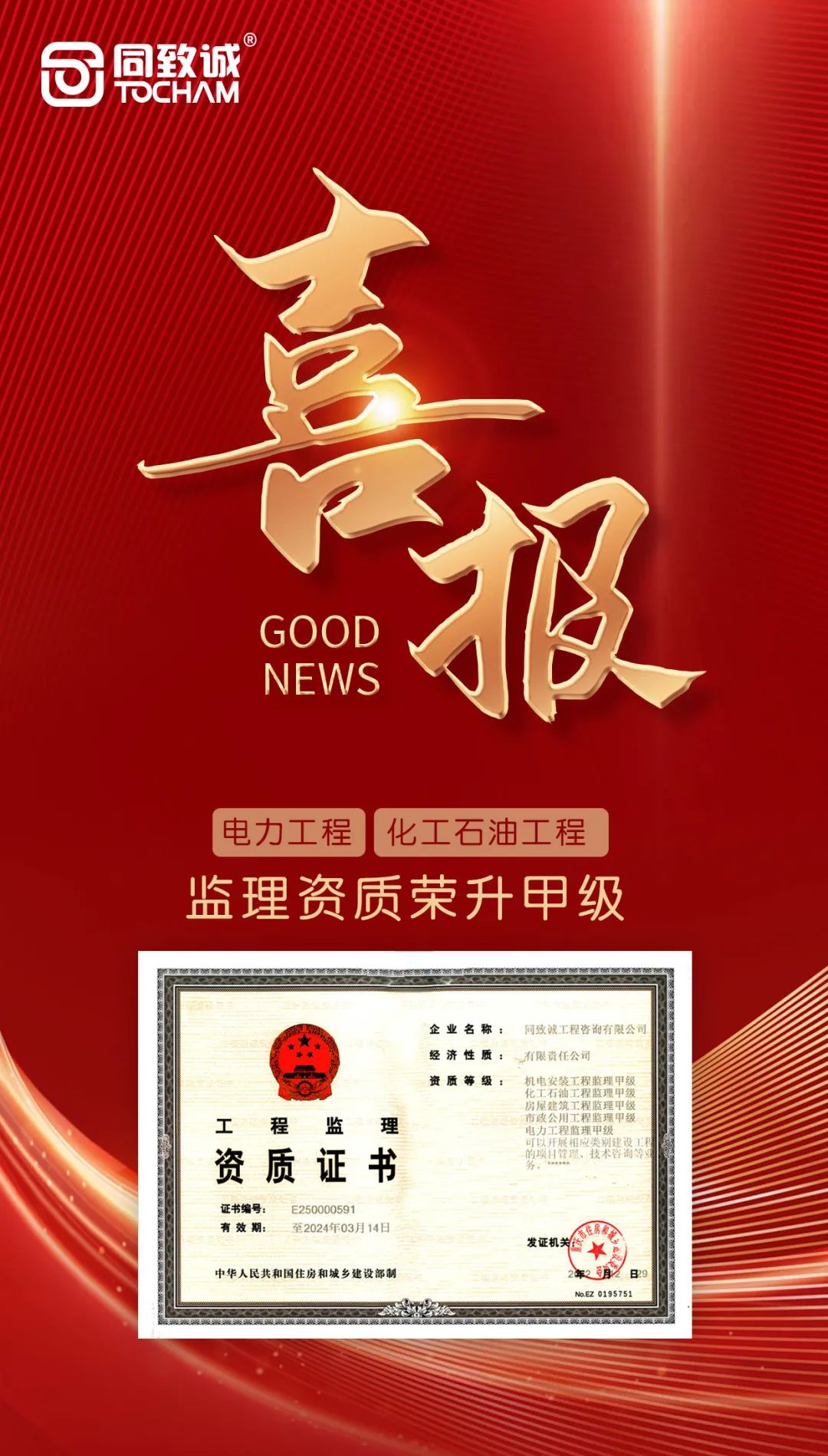 此次電力工程、化工石油工程監(jiān)理資質(zhì)的升級,給同致誠帶來更大的市場空間和更多的機遇,也進一步鞏固和提升了企業(yè)的行業(yè)競爭力和影響力!而公司的每一次提升和進步,都肩負著為客戶提供優(yōu)質(zhì)服務(wù)的責任,也承載著共同推動行業(yè)持續(xù)健康發(fā)展的使命。未來,同致誠還將向“工程監(jiān)理綜合資質(zhì)”沖刺,以更嚴格的標準、更嚴謹?shù)膽B(tài)度要求自我,秉承“誠信、誠心、誠懇、同進、同享、同贏”的經(jīng)營理念,竭誠為廣大客戶提供優(yōu)質(zhì)服務(wù),為促進工程建筑行業(yè)高質(zhì)量發(fā)展做出更大貢獻!